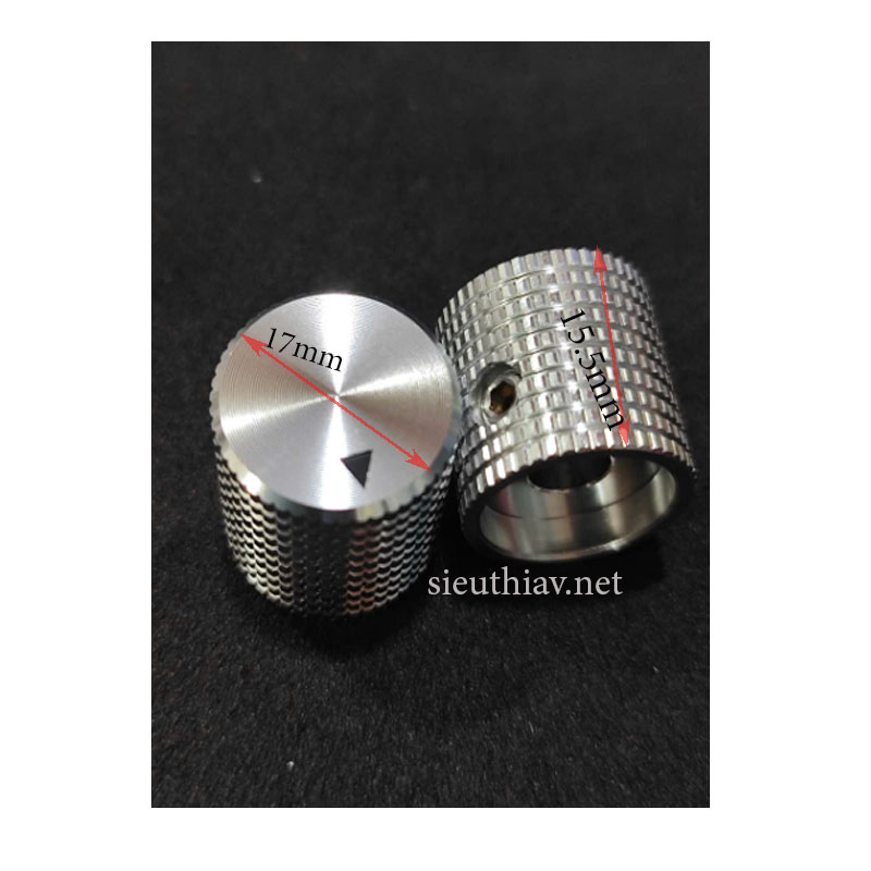 Núm vặn nhôm phay đường kính 17mm cao 15.5mm sử dụng vít hãm dùng cho trục volume có đường kính 6mm.