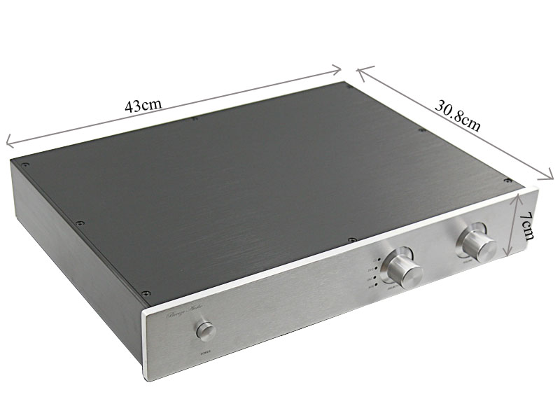 Vỏ nhôm phay kích thước ngoài 43x7x30.8cm. Kích thước trong 41x6.2x29.7cm. Phụ kiện đi kèm gồm: 02 núm volume; 04 chân cao su; Núm công tắc. Giá bán 1.450k/chiếc.